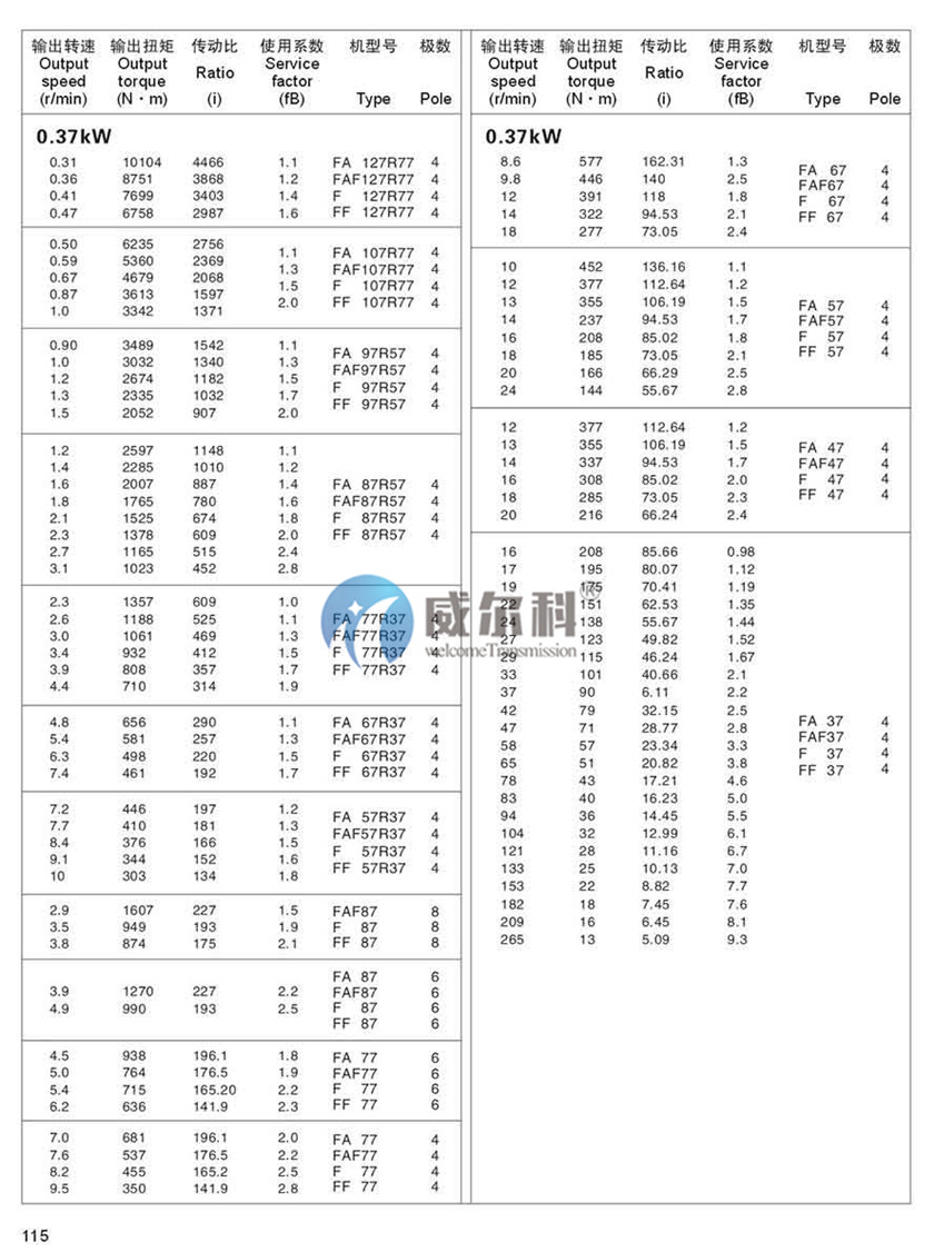 F-軸伸式、底腳安裝FA-軸裝式聯(lián)接