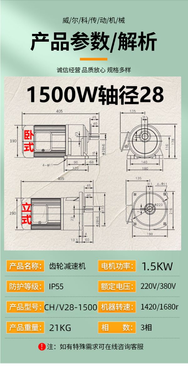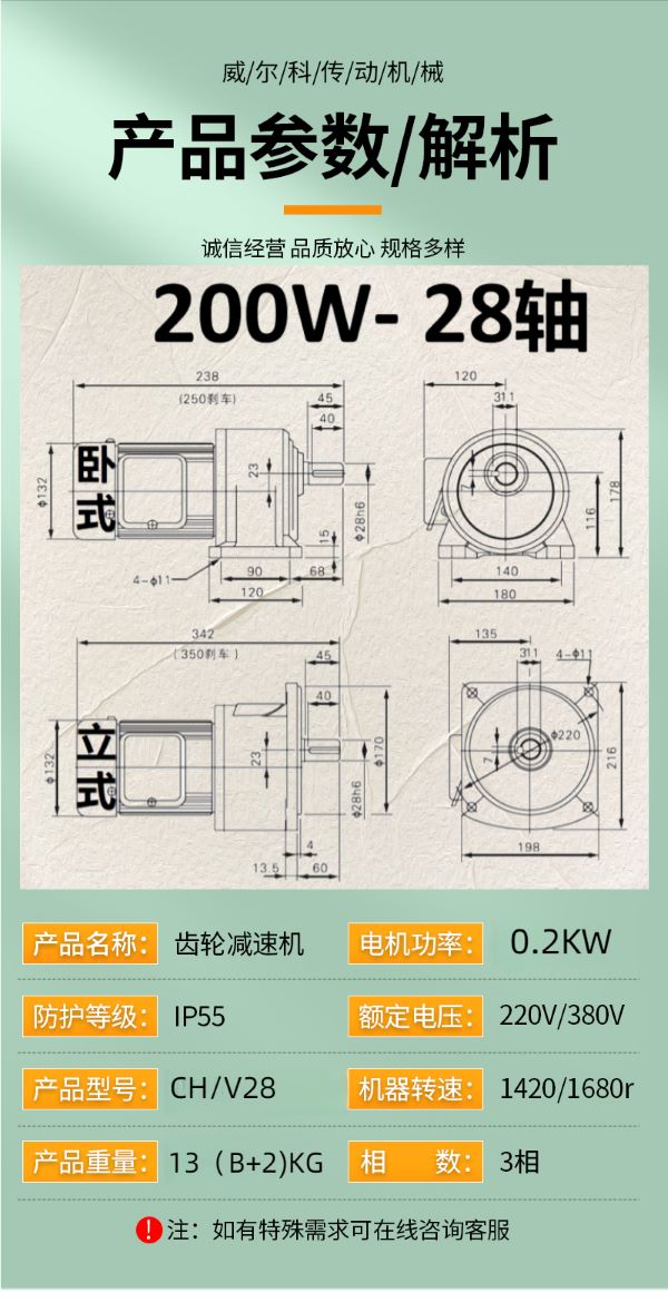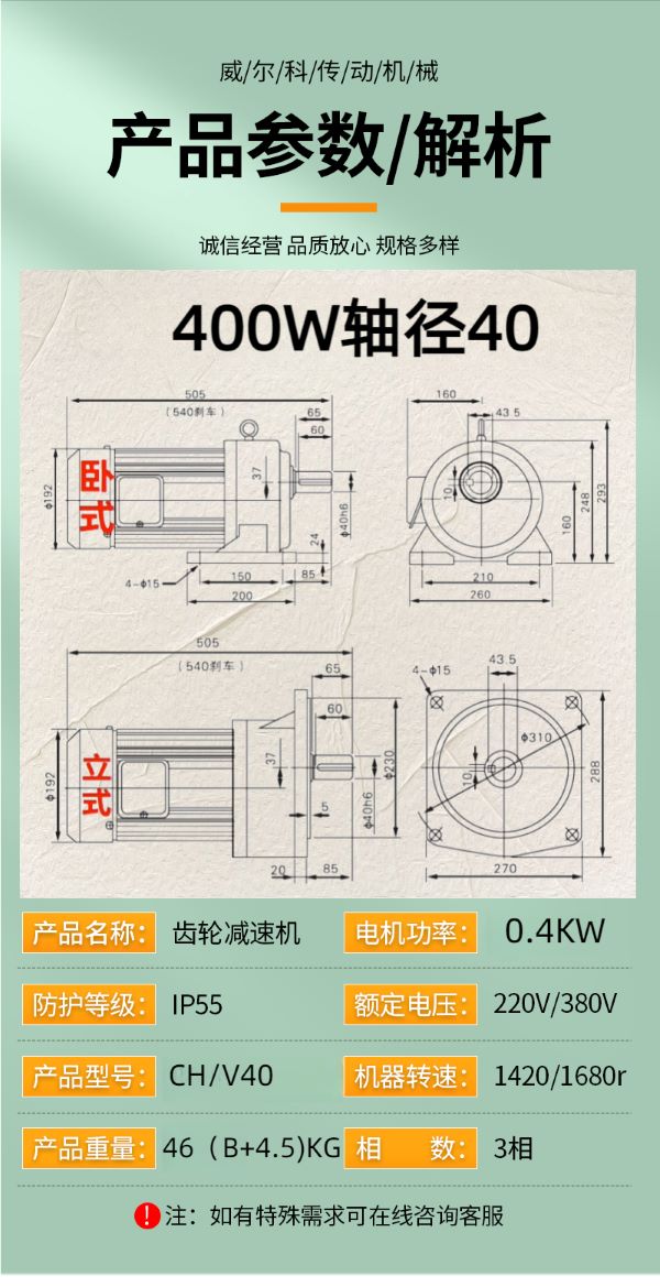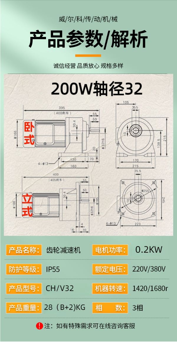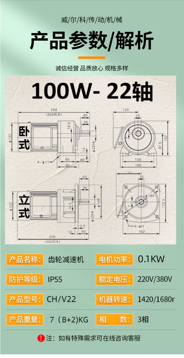 功率有: 100W(0.1KW減速機(jī))、200W(0.2KW減速機(jī))、400W(0.4KW減速機(jī))、750W(0.75KW減速機(jī))、1500W(1.5KW減速機(jī))、2200W(2.2KW減速機(jī))、3700W(3.7KW減速機(jī))......